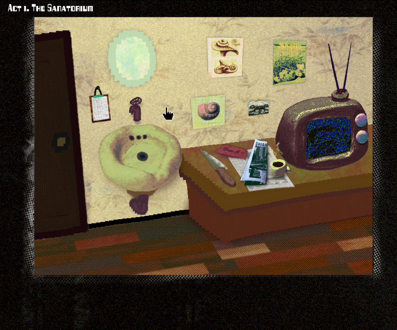 This week I'll continue to work on adding full interaction to the room, fill in all the dialogues and work on UI stuff (room transition, grain filter) if I have time :3